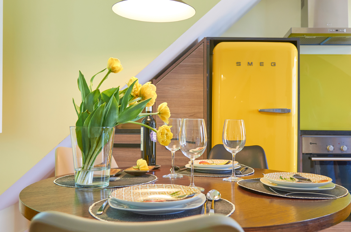 Duplex stairs on the third floor, consisting of two double bedrooms and a sofa bed for one person. With a sophisticated and comfortable design, it has all the essential equipment for an easy and practical stay, including air conditioning, washing machine and coffee. This apartment has a double floor and an extraordinary view of the city and the Tagus River. Entry to the apartment is with a physical key.