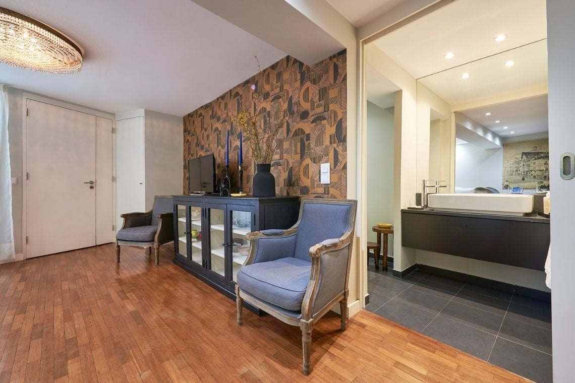 Remédios Apartment Ground Floor, consisting of a double bedroom and a sofa bed for two people. With a sophisticated and comfortable design, it has all the essential equipment for an easy and practical stay, including air conditioning, washing machine and coffee machine. Entry to the apartment is via electronic code.